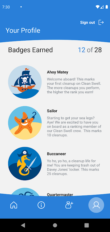 Sobald Sie Clean Swell heruntergeladen haben, benötigen Sie eine gültige E-Mail-Adresse, um ein Konto einzurichten. Ihre Privatsphäre ist uns sehr wichtig, seien Sie also versichert, dass wir Ihre Daten immer sicher aufbewahren. https://oceanconservancy.org/privacy-policy/