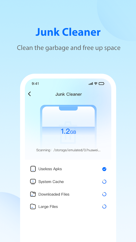 【1】Junk Cleaner: kann Ihr Mobiltelefon analysieren, Junk-Dateien, Systemcache und temporäre Dateien entfernen. Geben Sie Ihren Speicherplatz frei und verbessern Sie die Leistung Ihres Geräts.