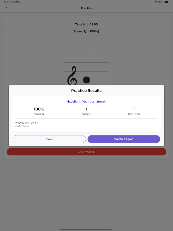 Sind Sie bereit, Noten schneller zu lesen? Clef Trainer bietet gezielte Übungsübungen, mit denen Sie Ihre Geschwindigkeit und Genauigkeit beim Erkennen von Noten im Notensystem deutlich verbessern können.