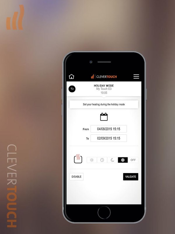 The LVI Clevertouch app allows you to remotely monitor and control your LVI heating system. Just connect your smartphone or tablet (WiFi) to your LVI TOUCH E3 wireless central programmer. You can then easily change modes and corresponding temperatures, create and change day and week programs, set holiday dates for all connected appliances, rooms or zones. Improve your comfort while saving energy. The CLEVERTOUCH app supports the new Yali Digital, Parada and Ramo range of LVI electrical oil filled radiators.