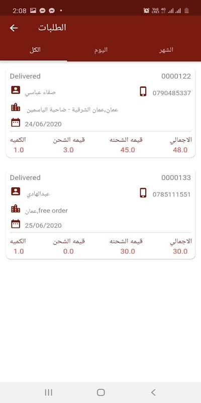 Click Delivery application for delivery services and shipping