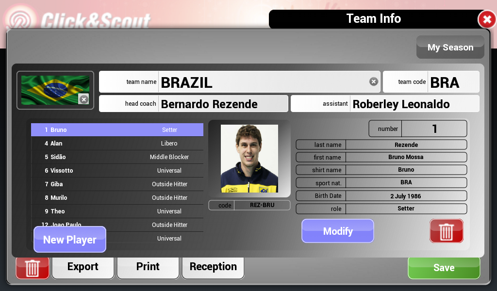 Click & Scout ist voll kompatibel mit allen Programmen des Data Project. Sie können die Scouts und Teams in Daten Video, Daten Video Wesentliche oder Daten Volley 2007 zu exportieren, wie Sie in das Programm einen Scout erstellt mit Data Volley 2007 oder mit einem anderen Click & Scout installiert auf einem anderen Gerät importieren können.