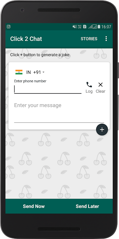 Außerdem wird Ihre Nachricht in 63 globale Sprachen übersetzt. Sie können auch Nummern aus Ihren Anruflisten abrufen. Jetzt können Sie auch die Geschichten von Favorite Messenger herunterladen und mit anderen teilen. Mit click2chat ist es sehr einfach, Nachrichten so zu planen, dass sie den Personen, die Sie interessieren, gefallen.