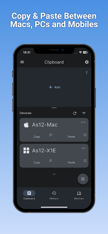 Clipboard Remote erleichtert das Kopieren und Einfügen von URLs, Texten, Bildern und Fotos zwischen Computern und Mobilgeräten. Entwickelt für Benutzer, die eine direkte und sichere Zwischenablageverwaltung ohne Cloud-Dienste bevorzugen, funktioniert es über Ihr lokales Netzwerk oder WLAN. Klicken Sie einfach auf „Kopieren“, um aus der Zwischenablage eines Remote-Geräts zu lesen, oder auf „Einfügen“, um den Inhalt Ihrer Zwischenablage an ein anderes Gerät zu senden.