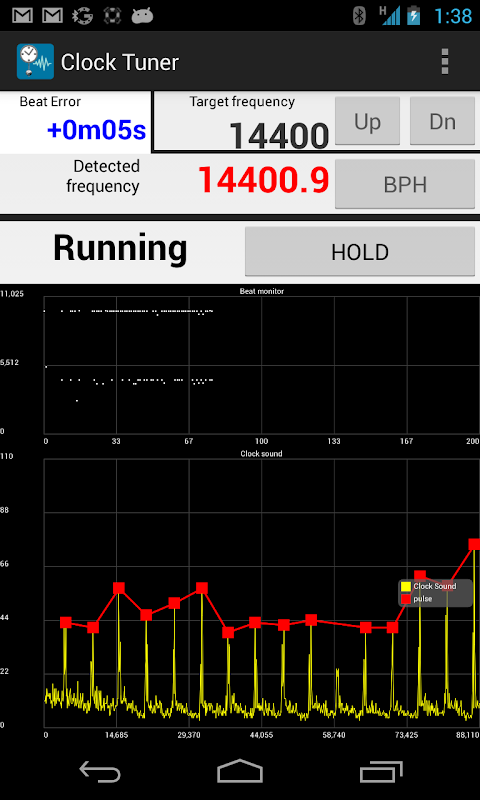 Rolex oder mechanischen Uhr: Zielfrequenz: 4 oder 5 Hz, Sample Dauer: 2sec, Empfindlichkeit: manuelle 50