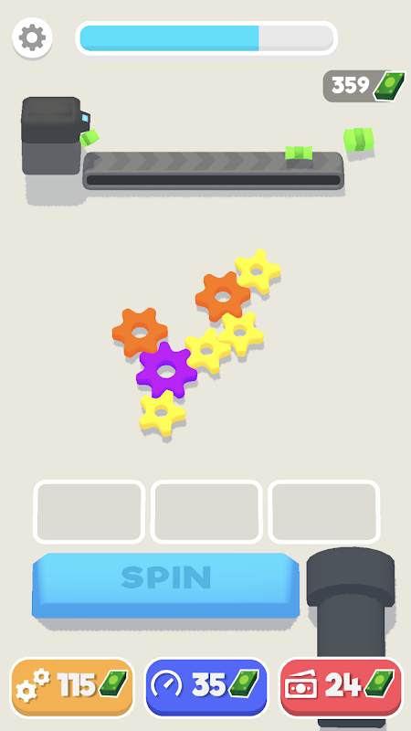 Create a network of gears that spin to generate cash. Upgrade your setup to increase your income even more!