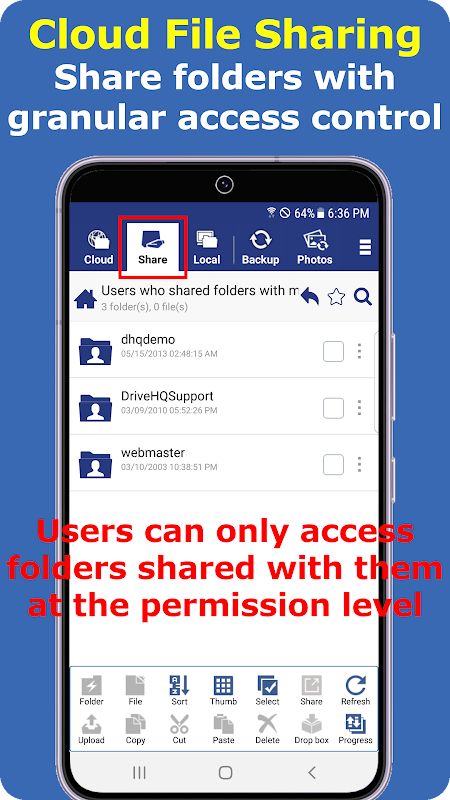 (3) DriveHQ unterstützt die erweiterte Ordnerfreigabe mit detaillierter Benutzerzugriffskontrolle.