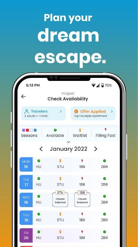 5.Die App erleichtert die Navigation, sodass die Planung eines Urlaubs einfach und schnell ist. Wählen Sie zunächst die Daten Ihres Urlaubs aus dem In-App-Kalender und markieren Sie Ihre Daten.