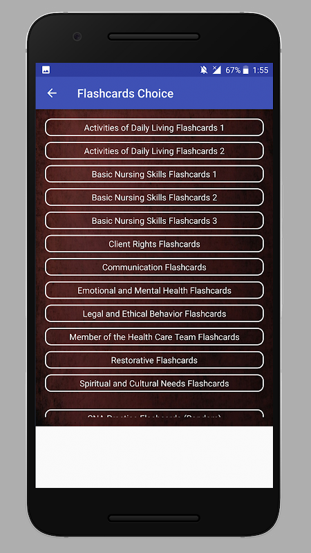 - Flashcard-Modus: Studieren und bereiten Sie sich auf den CNA-Test vor. Sie können dies als Referenz, Spickzettel oder Lernbuch verwenden.