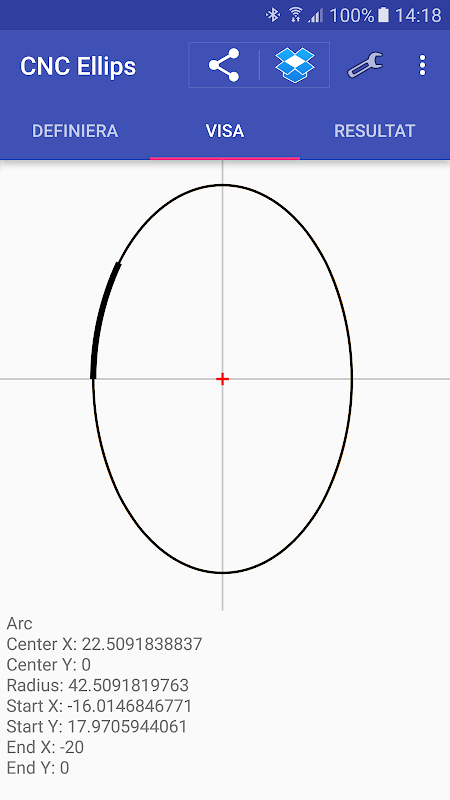 Ellipse Annäherung mit Kreisen. Übersetzen eine Ellipse zu den Bögen des CNC-Code