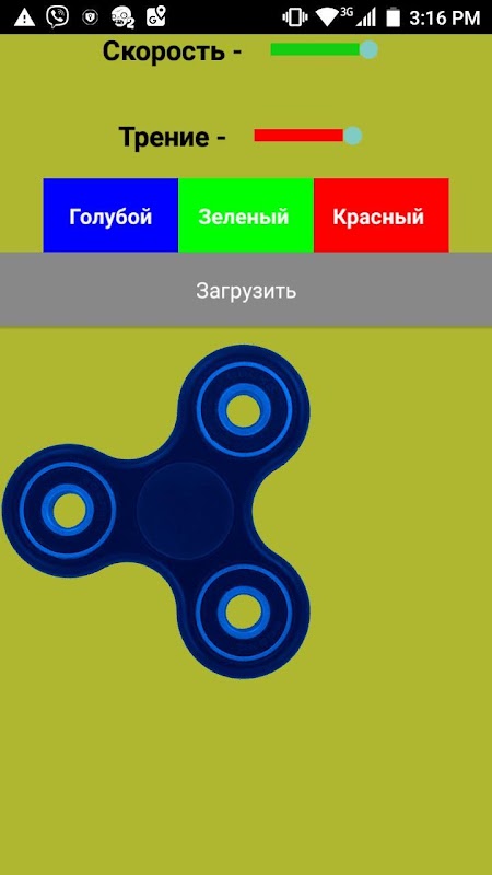 Крути 3 вида спиннеров зеленый, красный, синий. Загрузи и крути свой тоже.