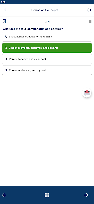 Umfassende Wissensdatenbank: Enthält Fragen zu verschiedenen Themen, die für die Zertifizierung von Beschichtungsinspektionen relevant sind. Greifen Sie auf das erforderliche Wissen für die Zertifizierung der Beschichtungsinspektion zu.