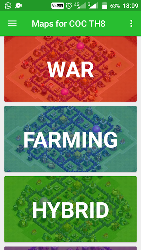 New Base Maps for Clash of Clans TH8 is Free Application in Strategy Category, in this App I want to help Clash of Clans to build base layout in 2017. in this App included top base layout and best war layout and any other to get inspiration how to build strongest Base Layout in four base in this App. for example is War Base Layout, Farming Base Layout, Hybrid Base Layout, and Trophy Base Layout.