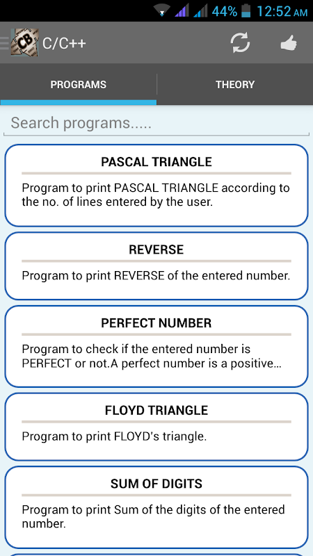 Sie können ganz einfach zwischen den verschiedenen Abschnitten (C / C ++, Java, Datenstrukturen, DBMS) zu navigieren, indem Sie den Schieberegler.