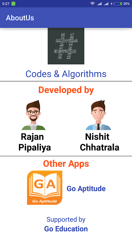 The app has very simple and smooth UI which will help you to quickly move into different sections. This will definitely help in preparing for exams or quiz or placements. 'Whenever' and 'Wherever' you need any algorithm or code you are just a click away with #Codes.