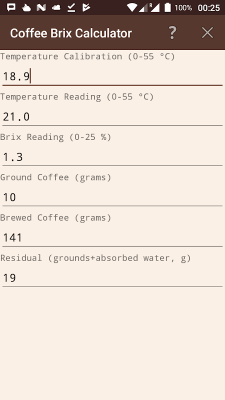 This App accurately converts Brix to TDS, and also computes the extraction yield. You can measure a brewed coffee and also plan a brewed one.