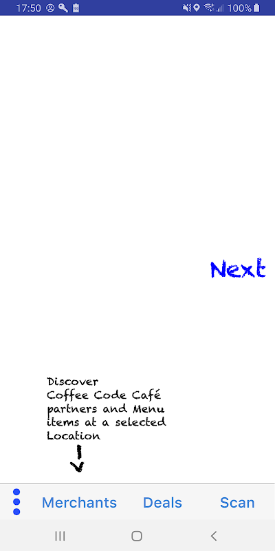 The app enables customers in-store or away to quickly Scan or Select a standard or special coffee, order and pay from their smartphones with the order going to the customer selected partner Coffee Code Café.