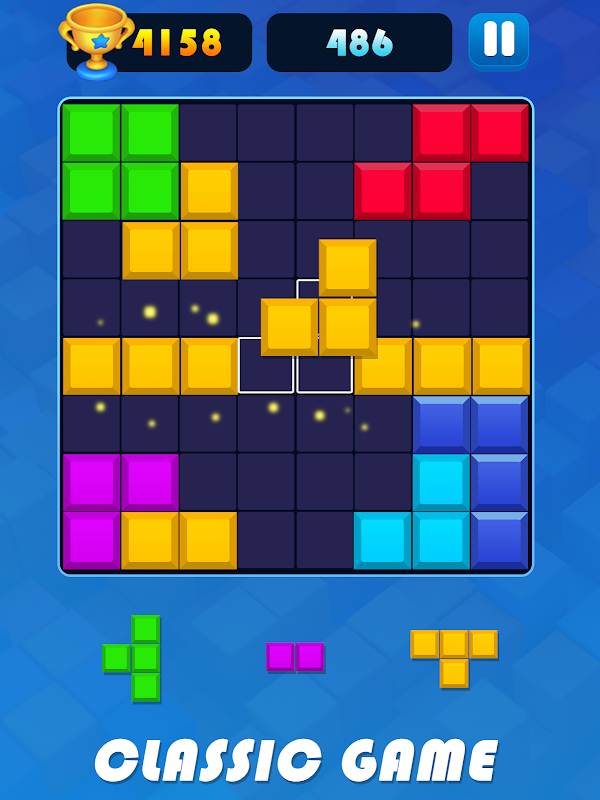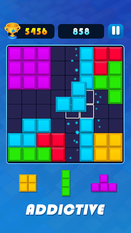 Color Block: Puzzle Blast Puzzle ist ein fesselndes Puzzlespiel mit einem einfachen Ziel: Ziehe farbige Kacheln per Drag & Drop auf das 8x8-Raster, um möglichst viele Blöcke zu kombinieren und zu entfernen! Mit endlosem Spaß und steigenden Herausforderungen wird dich dieses Spiel stundenlang fesseln und unterhalten.