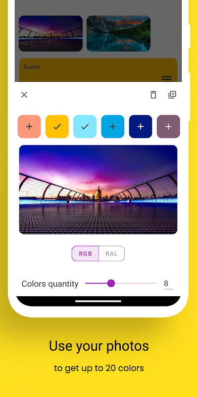 • Aus Bild: Verwandeln Sie Ihre Lieblingsfotos in wunderschöne Paletten, indem Sie Farben direkt aus dem Bild mit fortschrittlichen Quantisierungstechniken extrahieren.