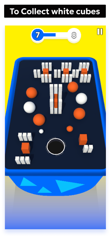 Einfaches, aber süchtig machendes Gameplay: Führe das bunte Loch mit nur einem Finger, sammle weiße Würfel und weiche den lästigen roten aus.🎮