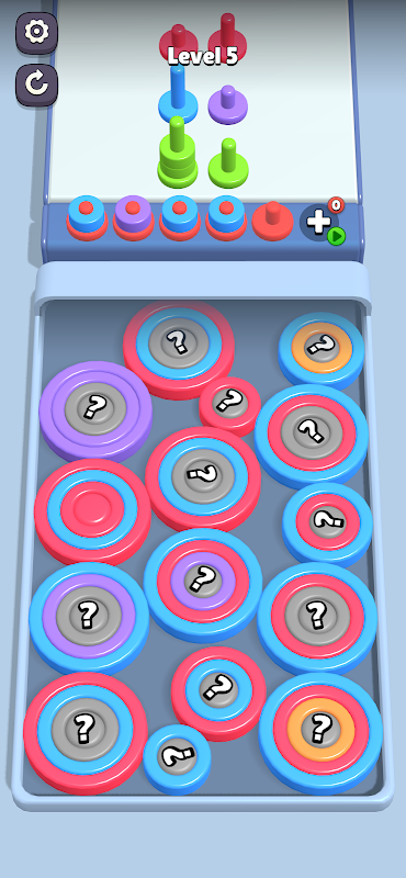 Ziehe bunte Schichten von Ringen, Quadraten und Dreiecken ab, um die passenden Ziele zu füllen! Tippe intelligent – überlaufe den Wartebereich und das Spiel ist vorbei. Plane jeden Zug und räume alle Ziele ab, um zu gewinnen!