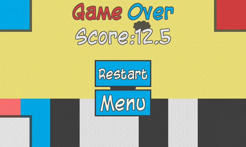 Rules: press buttons on the edges of the screen to change the color of the ball to land on the ground desired color.
