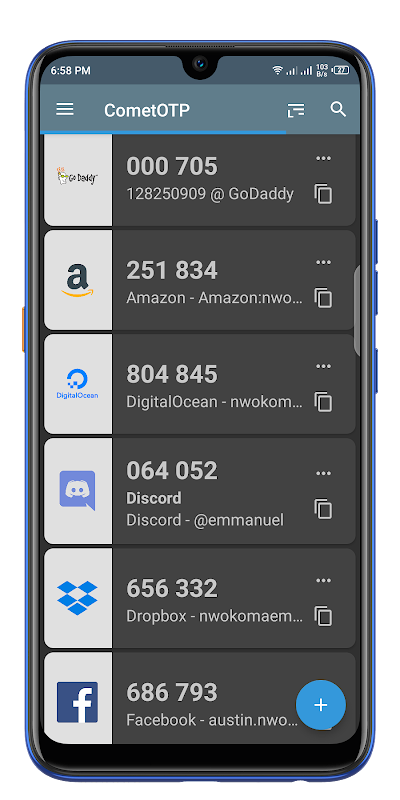 Mit CometOTP können Sie eine zusätzliche Sicherheitsebene für Ihre Online-Konten mit Zwei-Faktor-Authentifizierung (2FA) hinzufügen. CometOTP implementiert und unterstützt derzeit die beiden bekannten Kennwortauthentifizierungsalgorithmen: den zeitbasierten Einmalpasswortalgorithmus (TOTP) und den HMAC-basierten Einmalpasswortalgorithmus (HOTP). Befolgen Sie lediglich die Anweisungen zum Einrichten von 2FA in Ihrem Online-Konto, scannen oder importieren Sie den QR-Code mit CometOTP und melden Sie sich mit dem von CometOTP generierten 6-stelligen Code als zusätzliche Ebene in Ihrem Online-Konto an Online-Konto.