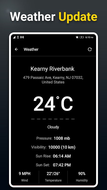• Das Wetter-Update wird in einem intelligenten Kompass angezeigt.