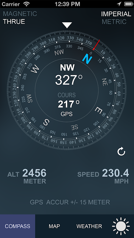 Compass GPS/A.T.(Weather, Flashlight, Map, Speedometer, Altimeter, Course)