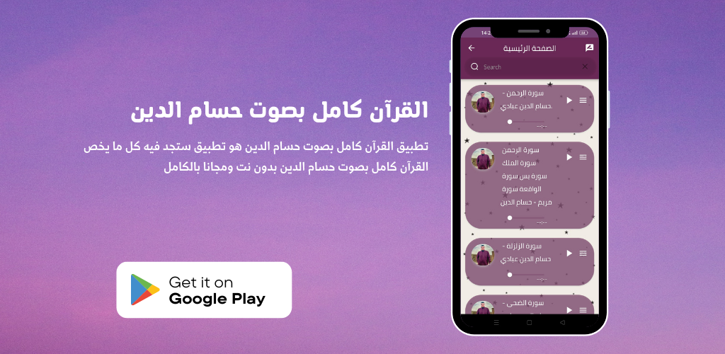 وإذا كنت من محبي الاستماع سورة الكهف بصوت حسام الدين عبادي، فلا تتردد في أخذ نظرة على باقي تطبيقاتنا الموجودة على المتجر والمتاحة للمستخدمين بشكل مجاني ويسير.