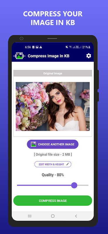 Die Hauptfunktion dieser App besteht darin, die Fotos genau auf die erforderliche Dateigröße zu komprimieren. Diese App komprimiert die Bildgröße in MB auf KB.