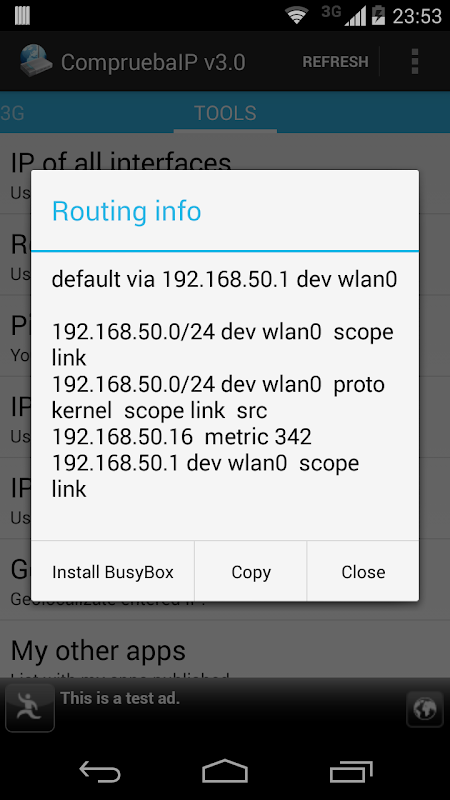Program to see all the network information of your Android device, showing the following information: