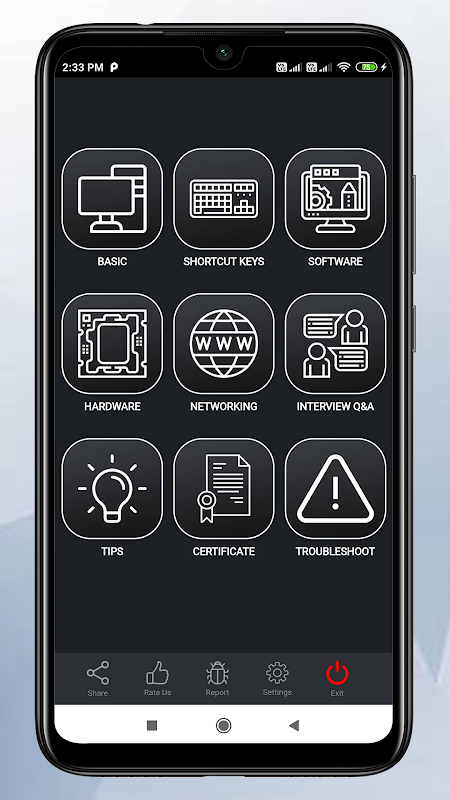 Diese kostenlose Computer-Trainings-App funktioniert vollständig mit offline KOSTENLOS. Es ist eine einfache Möglichkeit, Computergrundlagen, Programmierung, Grundlagen, Hardware, Software, Allgemeinwissen, Informationstechnologie, Netzwerk, Reparatur, Codierung und erweiterte Konzepte mit dieser App zu erlernen.