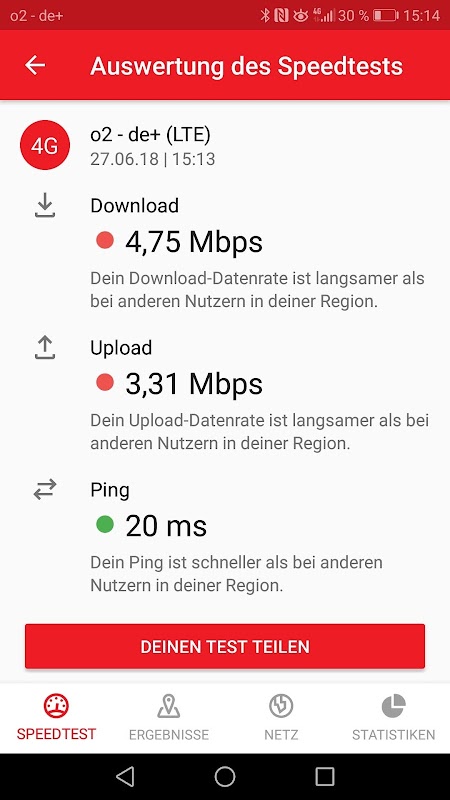 Haben Sie das Gefühl, dass die mobile Internetverbindung auf Ihrem Handy lahmt und der Handyempfang schlechter ist denn je? Mit dem COMPUTER BILD Netztest erfahren Sie woran Sie sind. Im Unterschied zu synthetischen Tests misst der COMPUTER BILD Netztest die Qualität Ihres Mobilfunknetzes praxisnah genau dort, wo Sie ihr Handy nutzen. Und Sie helfen COMPUTER BILD, die Schwachstellen im deutschen Mobilfunknetz aufzuspüren – und die Netzbetreiber mit den Ergebnissen zu konfrontieren.