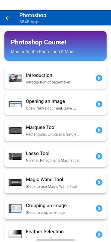 Die in dieser App enthaltenen Computerkurse sind unten aufgeführt: