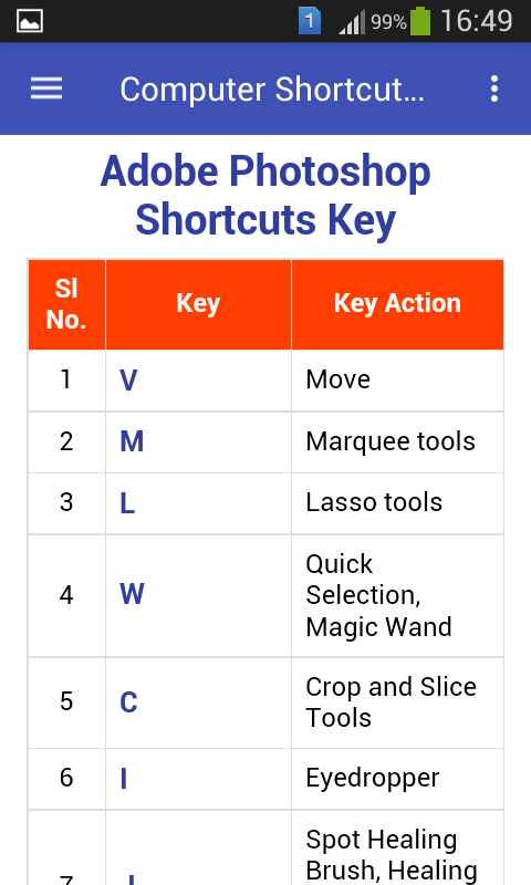 Computer benutzen Shortcut-Tasten-Code App können Sie Tastenkombination statt Maus verwenden. Tastenkombinationen können Ihre Arbeiten erleichtern und Sie können in schnellen Art und Weise mit dem Computer interagieren und speichern Sie Ihre Zeit Tastenkombinationen mit Hilfe von Computer-Shortcut Keys Android App.