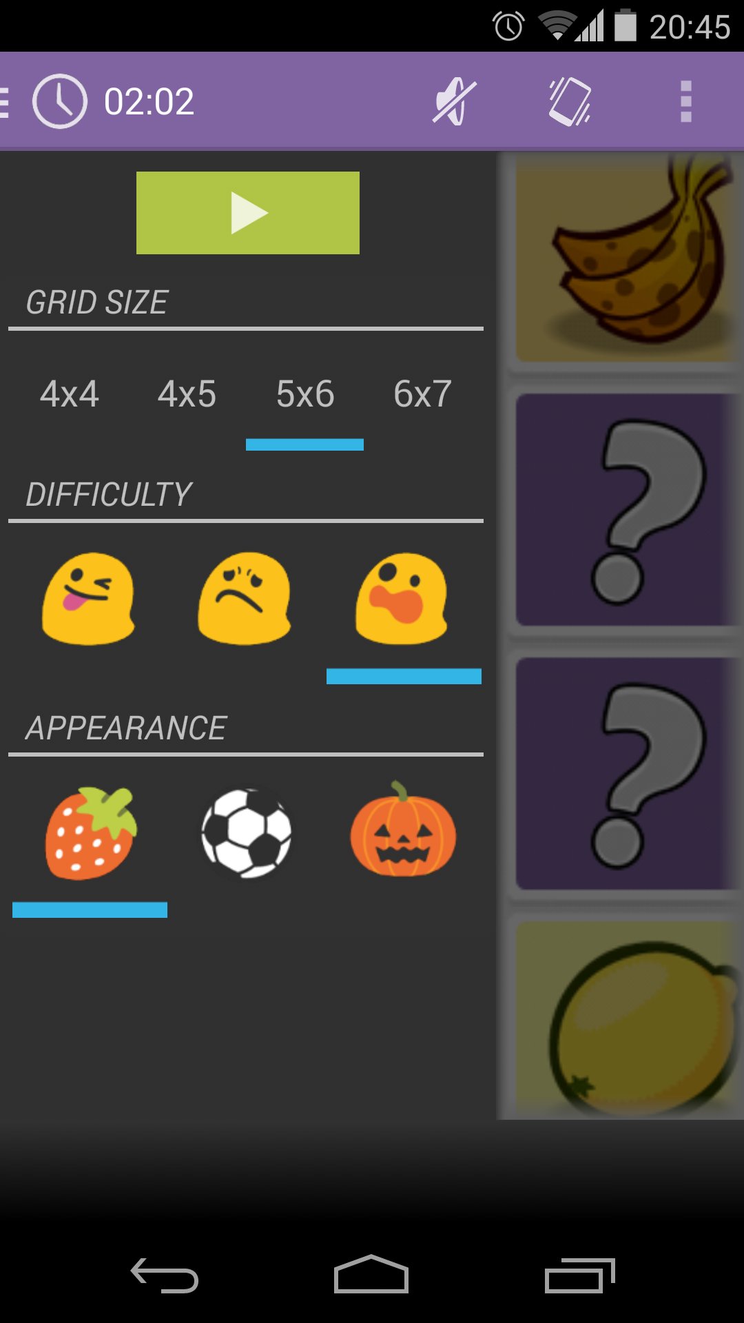 - You can choose from different types of grid, difficulty and appearance in the game options. To display the options swipe your finger from the left edge of the screen or click on the time.