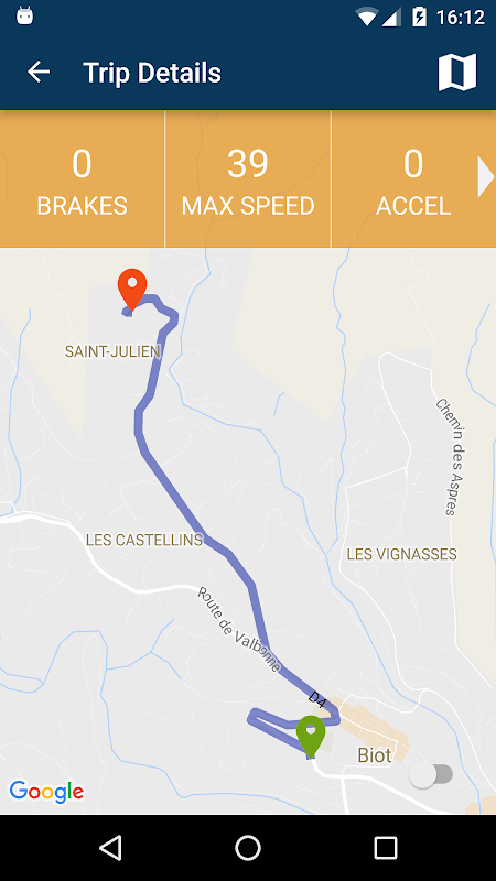 Reisen anzeigen, score, Fahr Ausnahmen und Feedback von Ihrem Telematikgerät.