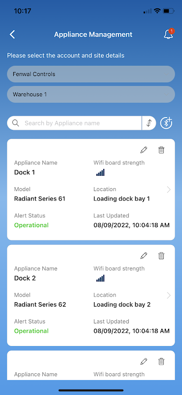 Ermöglicht Ihnen die einfache Verwaltung all Ihrer Geräte in einer einzigen Anwendung. Sie können Benutzer für die verschiedenen Standorte zuweisen und verwalten, an denen Ihre Appliances installiert sind. Benutzer sehen Leistungsdetails und Verlauf für jede Einheit und werden schnell benachrichtigt, wenn ein Problem auftritt. Benutzer erhalten Tipps zur Fehlerbehebung und Support-Links sind verfügbar, wenn Sie ein Problem nicht selbst lösen können.