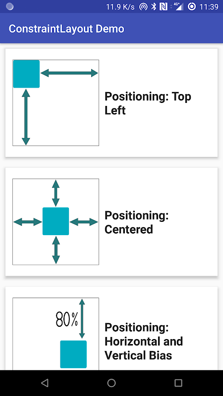 Eine Demo-Anwendung für Android ConstraintLayout mit verschiedenen Funktionen.