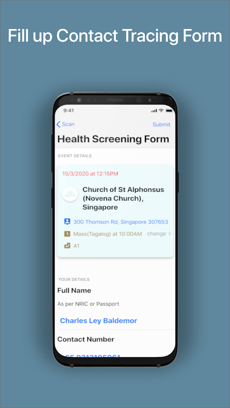 Die Kontaktverfolgungs-App für Kirchen wurde ursprünglich für katholische Gemeindemitglieder und Kirchenverwalter in Singapur erstellt. Für den Kirchenverwalter wurde eine digitale Plattform geschaffen, um die Kontaktinformationen und den Standort der Gemeindemitglieder innerhalb des Kirchengeländes zu überwachen.