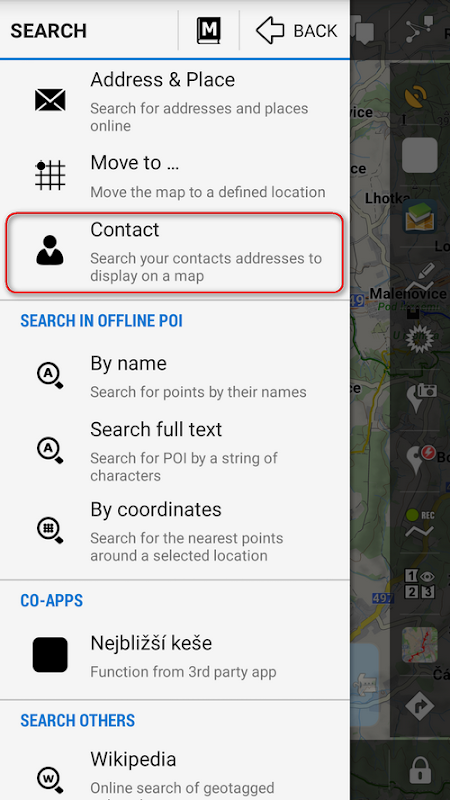 Das Addon Kontakte ermöglicht es in den Telefonkontakten Ihres Gerätes zu Suchen und diese auf der Karte in Locus Map darzustellen. Dieses Addon verfügt über keinerlei eigene Bedienoberfläche oder Widgets, es fügt lediglich die Funktion selbst zu Locus Map hinzu.