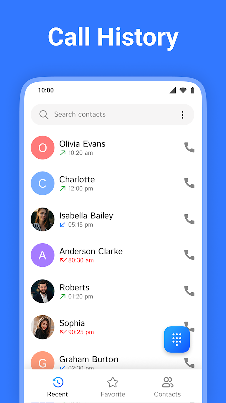 • Anrufverlauf – Sehen und verwalten Sie Ihre letzten Anrufe übersichtlich und organisiert.