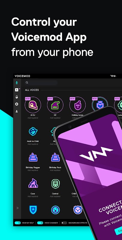 Steuern Sie VM von Ihrem Smartphone aus: Lösen Sie Töne aus, ändern Sie Ihre Stimme und steuern Sie alle Aktionen.