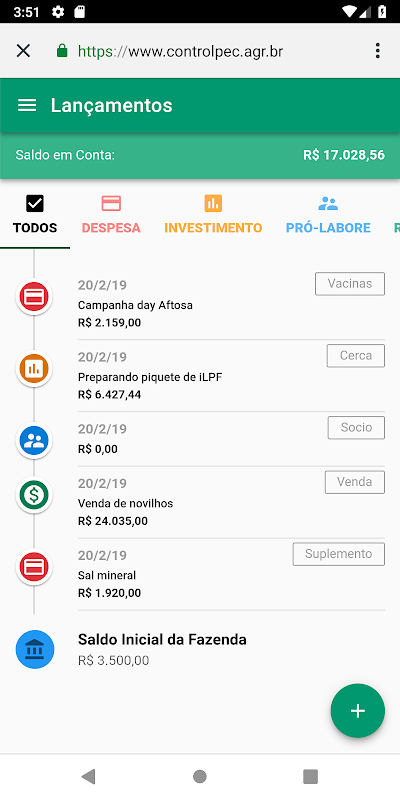 Primeira versão do ControlPec com todas as funcionalidades essenciais para controle financeiro de propriedades rurais da pecuária.