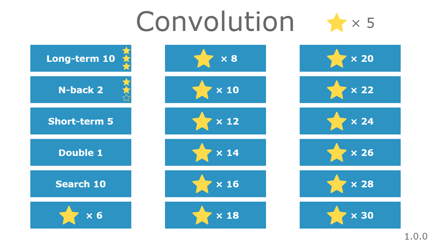 Das Spiel hat verschiedene Modi wie N-Back, Doppelfaltung usw.