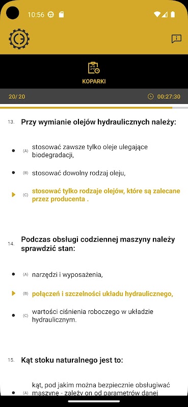 - Prüfungsmodus – Prüfungssimulation (nach Bedarf: 20 Zufallsfragen, Zeit – 30 Minuten, Bestehensschwelle – 16 (max. 4 Fehler));