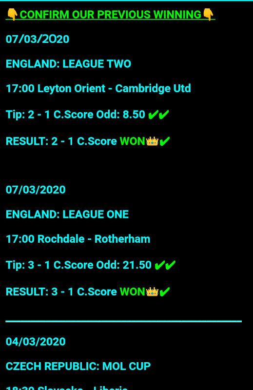 We will try and update this section regularly. This means that you can expect daily correct score predictions. There is enough of football action across the globe literally on a daily basis. Since we will be analysing most of matches, predicting the most likable scores should not be too big of a challenge.
