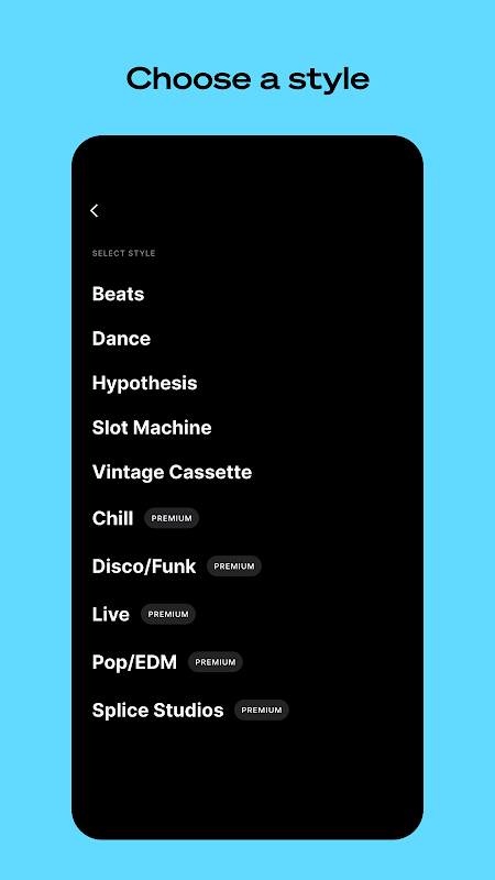 Erstellen Sie einen Stack, indem Sie einen Stil auswählen und dann bis zu acht Instrumentalebenen aus dem gesamten Splice-Katalog hinzufügen – jede Auswahl ist einzigartig und für die Arbeit bestimmt.