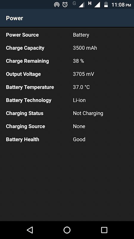- Battery Info : detailed diagnostic of your device battery including charge capacity, output voltage and battery temperature.
